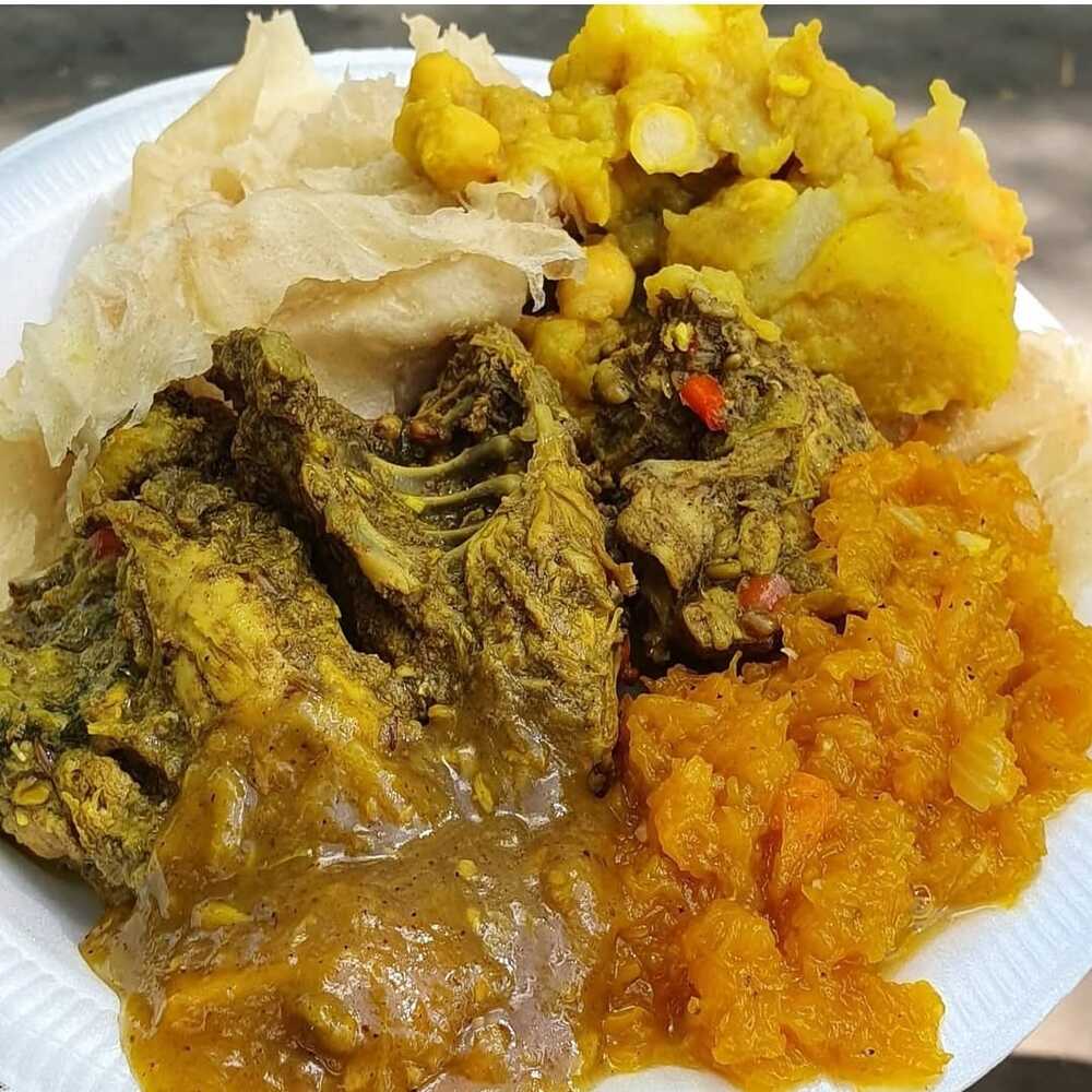 Meats & Seafood/Vegetarian Options/Sides(Dhalpouri Roti,Paratha / Buss-Up-Shot) + more